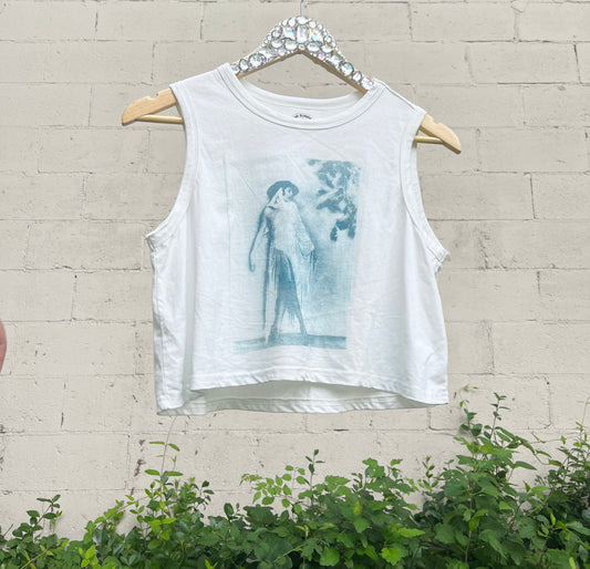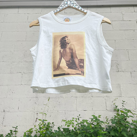 "Greta Garbo" 1920's Retro Print White Crop Tank Top Small