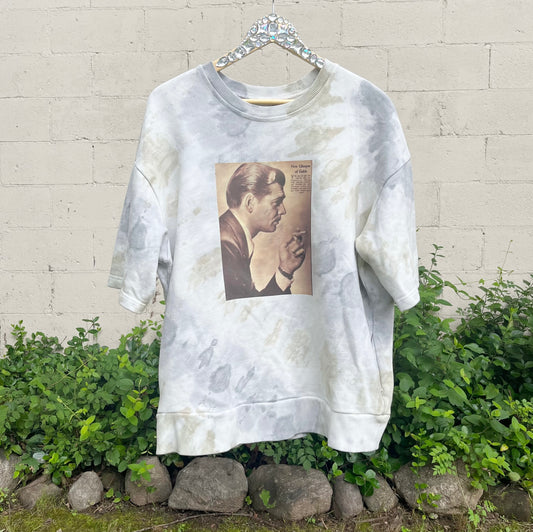 "Clark Gable" Retro Print Tie Dye Crew Short Sleeve Sweater XL