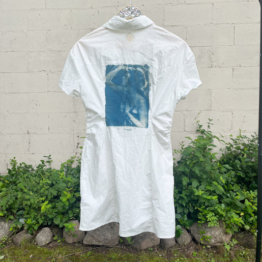 Cyanotype Sunprint Retro 1920's Flapper Blueprint Mini Dress XS